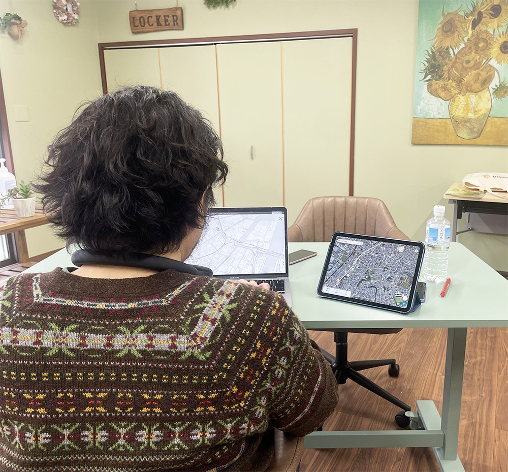 ・ポスティング、軽作業B型では、主に自社ECサイトのデータデザインの補佐を行なっています。もちろん、共同作業が苦手な方には配慮し、マイペースでできるAIを使った創作デザインもあります。最終的にはみんなで協力して「かたち」を作りあげていきます。