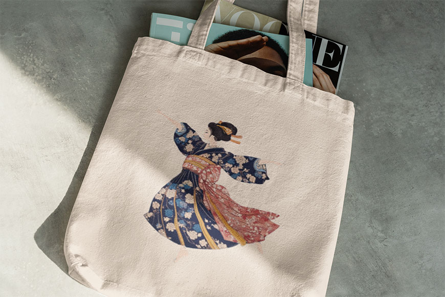・ポスティング、軽作業B型では、画像生成AIを使ってトートバッグのデザイン原画制作を主に行います。シチュエーションや画風、色や雰囲気など自由に表現する創作活動を通して、気持ちを整えたり、自分と向き合う時間も大切にしています。AIを使うのが初めての方でも、難しさを解決してくれるスタッフと専用アプリがありますので安心して取り組めます。