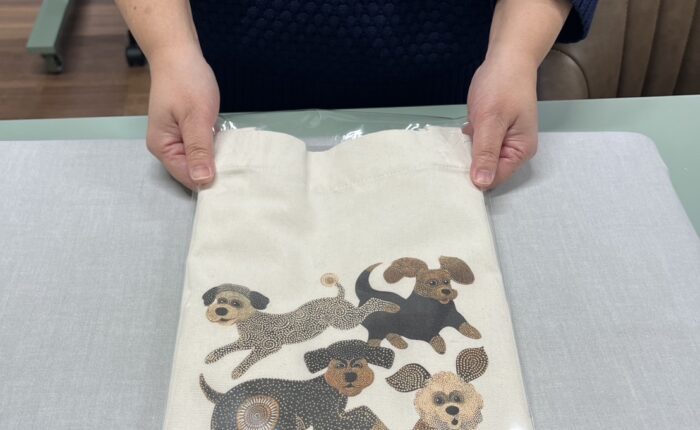 やさしい雰囲気や、犬たちの楽しそうな表情、動きのある構図を表現した上で、完成したトートバッグを手に取られた時に、「自分の絵がバッグになった」という体験は、体験ご利用者様にとって大きな達成感につながったように感じます。