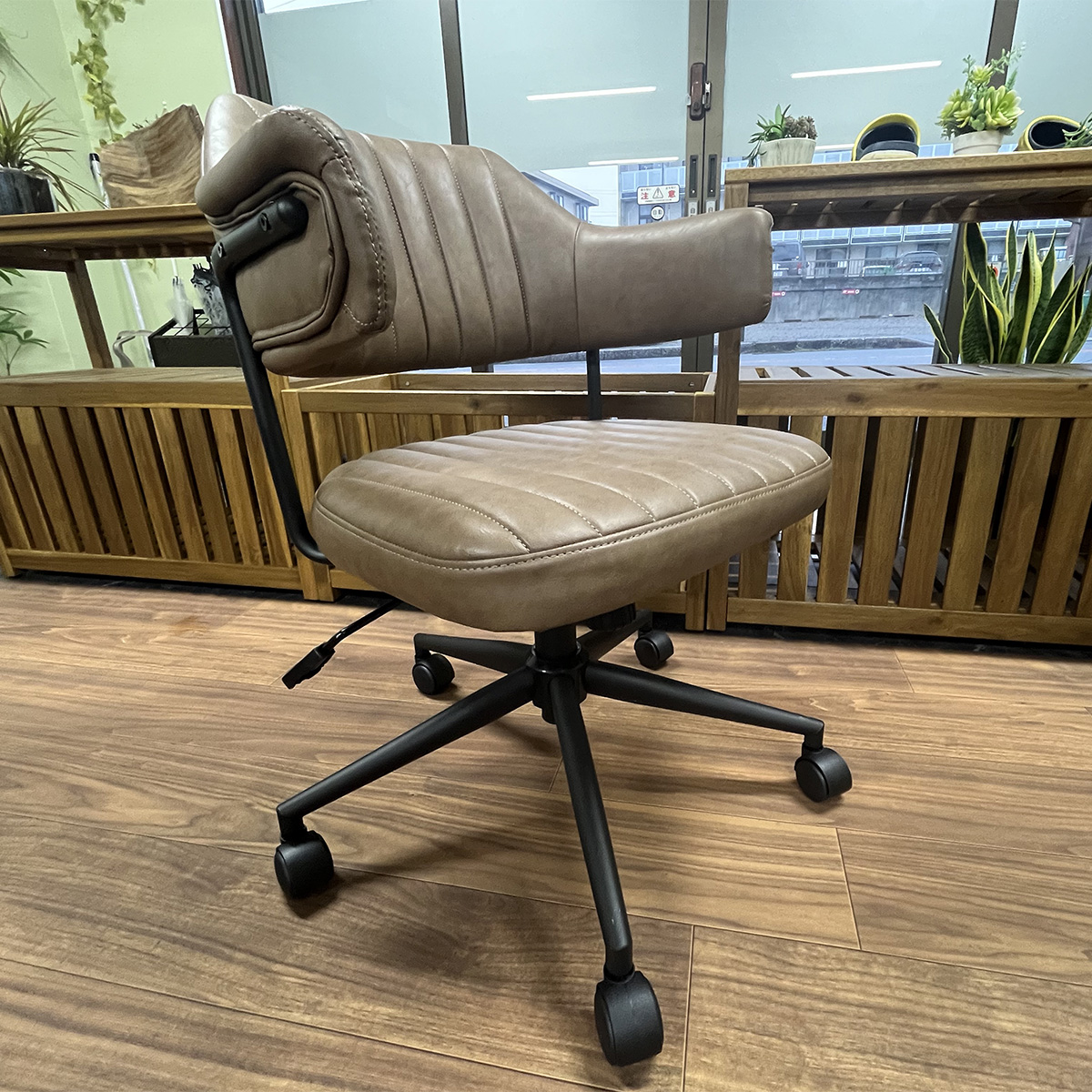 身体をやさしく包み込む背もたれと、程よい弾力のクッション。落ち着いたブラウンのレザー調素材が空間になじみ、心まで穏やかにしてくれます。高さ調整やキャスター付きで、作業内容や体格に合わせた使いやすさも抜群。